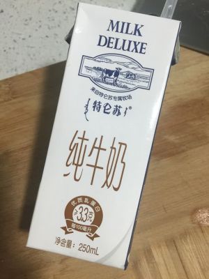 再将纯奶加热至微沸腾后缓缓倒入蛋液碗中,边倒边搅拌