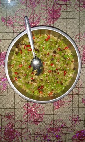 1、青椒一斤半剁碎加盐少许拌匀;