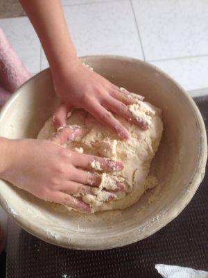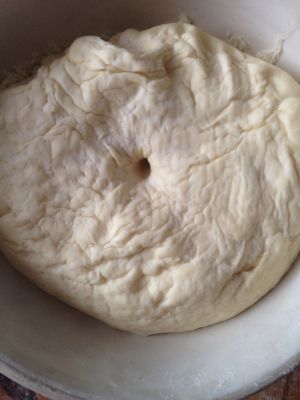 (我看到面发的不错,我上去就去翻腾面了,手残!忘记拍照了!大家凑合看吧,这是我翻过的面,囧rz)发到面团的两倍大即可…
