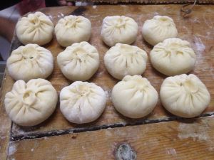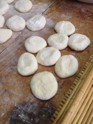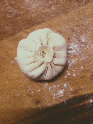 完工了!包子底下稍稍抹一点点食用油(可以防止小包子皮粘在锅上),放入锅中,开蒸吧…