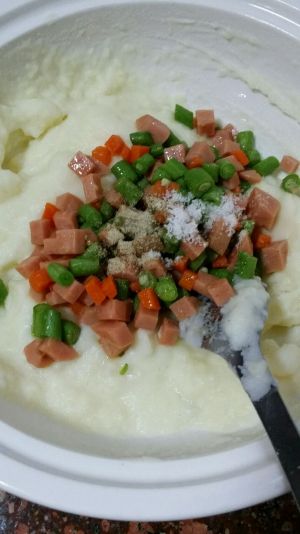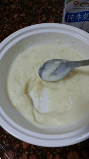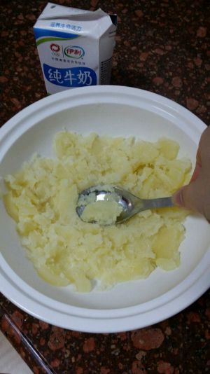 加入牛奶搅拌成稀稠合适的土豆泥。