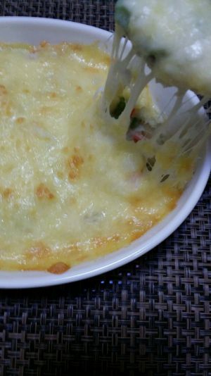 烤箱上下火180度预热,12~15分钟,烤至芝士溶化,表面金黄即可。