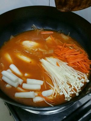 加入年糕,金针菇,胡萝卜