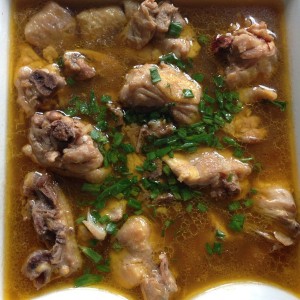 煎到两面金黄,到花雕酒,好开后,再倒高汤或水,与高度鸡块持平。加盐,少量糖,煮15分钟。