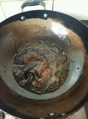 葱叶发焦时加入白糖50克熬化