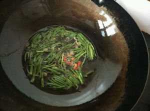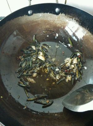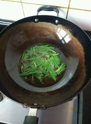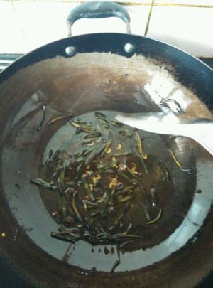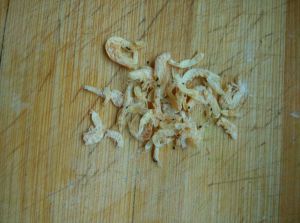 葱叶发黄时加入虾皮和辣椒碎