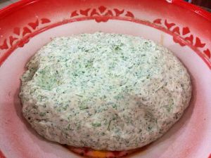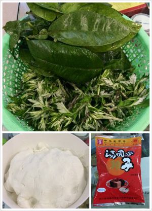 艾蒿开水里串一下 切碎 和汤圆面团混合均匀
