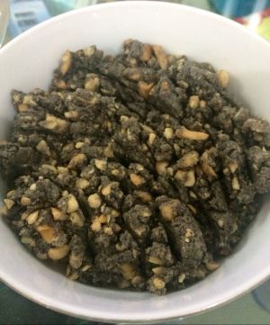 熟花生米碾碎 和黑芝麻馅儿混合待用