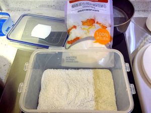 找一个方形的乐扣乐扣,洗干净擦干,底上铺一层椰丝。