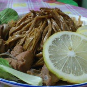 .加入原先泡好的黄花菜,炒约4、5分钟左右