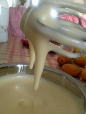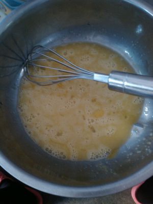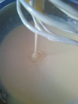 电动打蛋器一直把蛋液打到奶油状就可以了。不用电动的话,这就是个漫长的过程