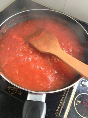 煮啊煮~番茄酱变得浓稠之后加入柠檬汁。then~继续小火煮。