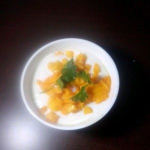 盖上保鲜薄再次大火蒸十分钟,出锅,冷却!我的放了点芒果丁!