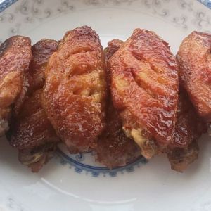 鸡翅用奥尔良鸡粉腌制好,盖上保鲜膜,放冰箱腌制一晚。腌制时间超过4小时以上才能入味。
