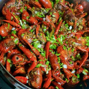 起过烧油,放龙虾调料酱炒香,下大蒜,生姜。酱油。鸡精这样。个人口味