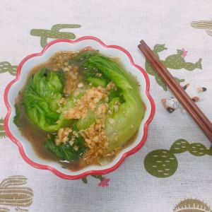将生菜切去头清洗干净,蒜瓣切成蒜末备用
