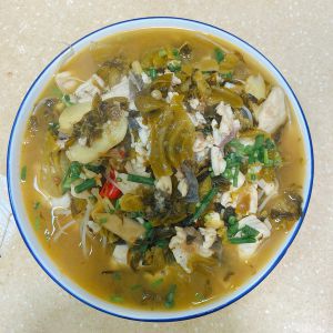 把买回来的鱼清洗干净切片腌制十五分钟备用。热油下蒜葱头把酸菜炒出香味,➕500ml开水下锅放剩下的酱料包熬制15分钟,依次放鱼片和豆芽一起再煮10分钟。