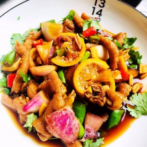 加入柠檬,泡椒,红绿辣椒,柠檬