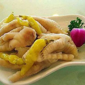 凤爪表面冲洗干净,放入提前准备冰水浸泡(冰水是凉白开或者纯净水冰箱冷冻)