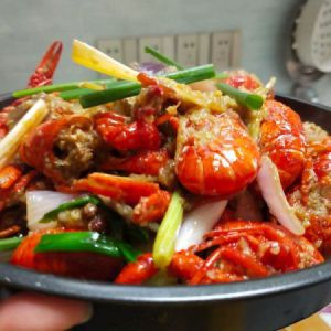 锅内放入油,把蒜蓉炒香,放入姜丝辣椒一勺蚝油少许糖,放入小龙虾,翻炒后放入水,覆盖小龙虾就行,等快收汁的时候放入洋葱,收汁后放入葱段,起锅