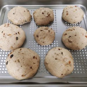 揉到面团光滑,加入干果碎,先用手揉,再用厨师机揉一分钟到均匀。