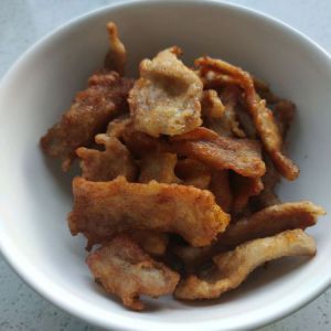 热锅烧油炸止金黄捞出沥干油,再散上椒盐或烤肉蘸料。(或者也可以用像糖醋排骨的做法方式也是可以的)~(还可以用番茄酱代替)