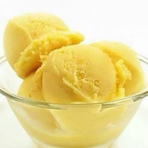 将70ml纯牛奶和10g糖粉与芒果块混合,用料理棒打成类似奶昔状。