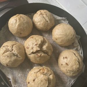 面醒发两倍大,把红糖红枣一起拌入,可能会粘手加点干面粉,揉好揪成一个个圆形揉一揉放蒸锅二次醒发十分钟