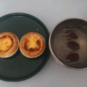 冰糖红枣炖燕窝,加上自己烤的蛋挞,美味的早餐!