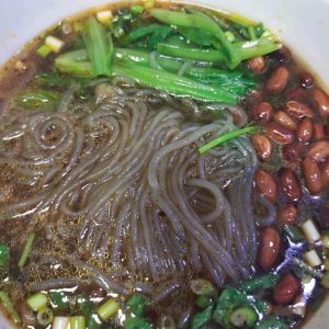 把粉条和菜放入汤碗里!放上花生米!这就成了。一碗酸辣爽口的粉让你在炎热的夏天里胃口大开!关键的问题是咱们自己在家做干净卫生!