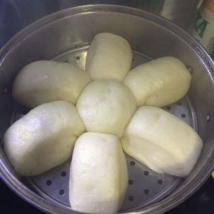 箅子上刷少许油,冷水,放入锅中盖上盖子焖10-20分钟(二发),再点火蒸15分钟左右即可