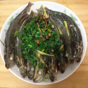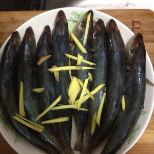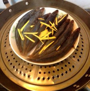切少许姜丝,铺鱼巴浪鱼上,撒一点黄酒。