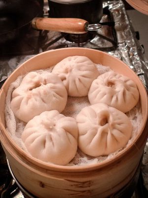 二次发酵后开始大火蒸,米国火小,蒸20分钟也就可以出锅了