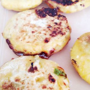 将南瓜蒸熟弄成泥。加入糯米粉。奶酪揉成。鸡蛋揉成面团