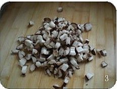 香菇去蒂,洗净以后切成和萝卜干一样大小的粒