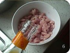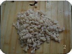 猪肉切丁备用,然后加少许料酒把猪肉丁腌一下
