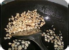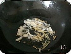 锅内留底油,放葱姜丝和蒜片爆出香味