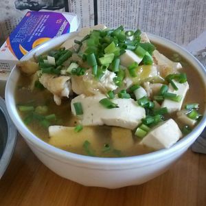 最后把豆腐打入锅里滚2-3分钟!最后放盐和香葱调味!关火即可!