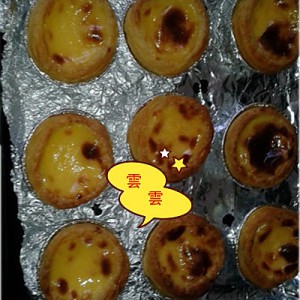 蛋挞水倒入挞皮中,8-9分满,烤箱预热210°,中下层烤25分钟,喜欢焦点的剩下5分钟的时候往上移动一层,出来的成品会更诱人哦,下面我上传几个过程图