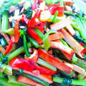 蒜末,辣椒先放锅里炒香,在放入香干微炒,最后放入芹菜炒熟,加盐和鸡精即可
