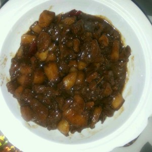 然后加入开水,开水要完全浸没肉,尽量多点,大火烧开转中小火,炖大约1个半小时就差不多了,快到时间一定要看着防止水少糊锅!看到汤浓稠的时候加入盐调味翻炒均匀关火!此时一道美味的红烧肉就做好了!