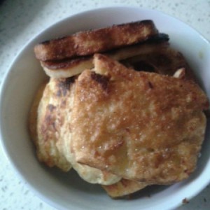 将馒头切成自己喜欢的厚度,5厘米是最适合的。(切时可以慢慢地,不要急)