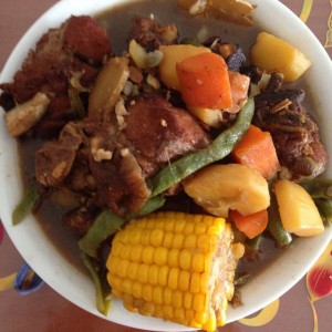 加入土豆、豆角、胡萝卜,煮到土豆烂糊为止,这个过程一直用小火,让汤汁慢慢进入蔬菜中。