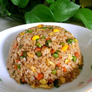 翻炒均匀后出锅,一盘色彩缤纷的酱油炒饭就做好了。