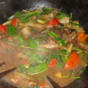 黑鱼一尾,起油锅煎制两面黄。捞起备用。
