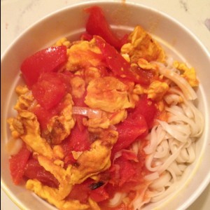 锅内加油少许,油热后倒入鸡蛋。鸡蛋定型后,放入西红柿,翻炒2分钟。加入适量的盐,水,焖煮5分钟。