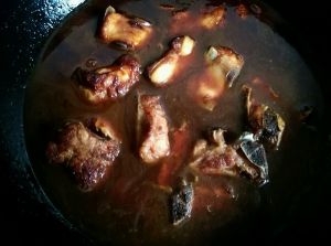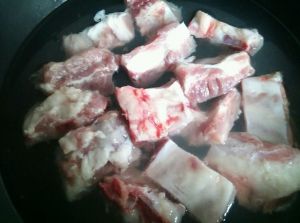 淀粉混上可以没过排骨的开水,倒入锅里,小火闷二十分钟左右。