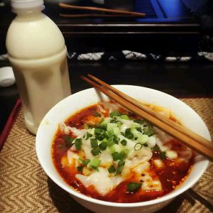 高汤加油辣子海椒,花椒面,榨菜粒,盐,胡椒面,味精撒上葱花开吃