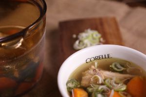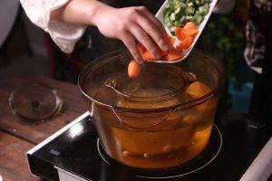 将腌制好的鸡肉放入康宁Visions1.2L养生炖盅中,加入适量水,然后将炖盅放入深锅中隔水炖煮至烧开。小煮说:鸡肉嫩滑可口的秘诀“利用康宁Visions1.2L养生炖盅隔水炖优势,在烹饪过程中实现恒温慢炖,更有效锁住鸡肉和秋葵等食材的营养,还原食材原汁原味。”