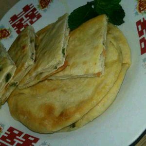 擀成饼皮,撒适量细盐,压一下,把盐压到饼皮上。